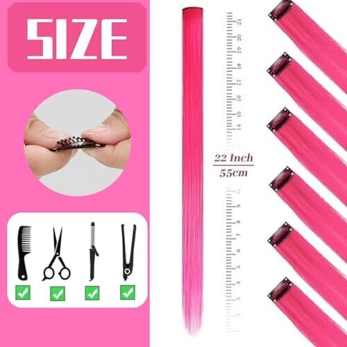Transform your look with vivid hot pink 22-inch clip-in extensions for instant volume and length. Easy, damage-free application you can snap in and out in minutes, with durable heat-stylable synthetic fibers that stay silky, straight, and tangle-free.