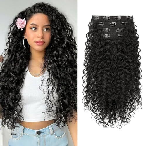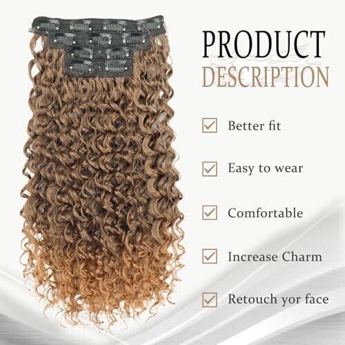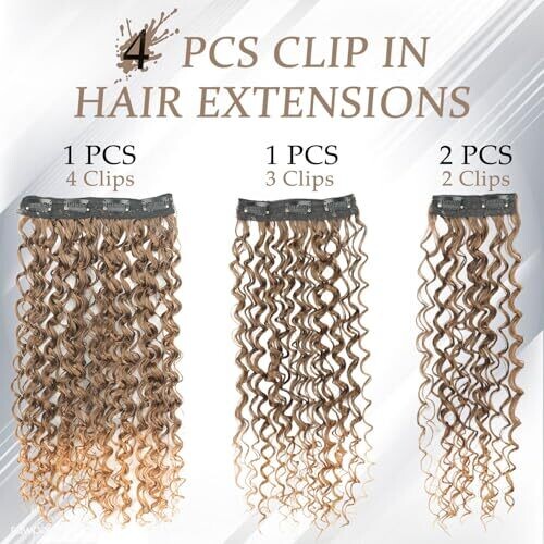 Clip-In Hair Extensions, 4-Piece High-Temperature Silk, 20-Inch Curly Hair Extension for Ladies