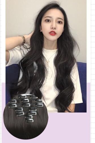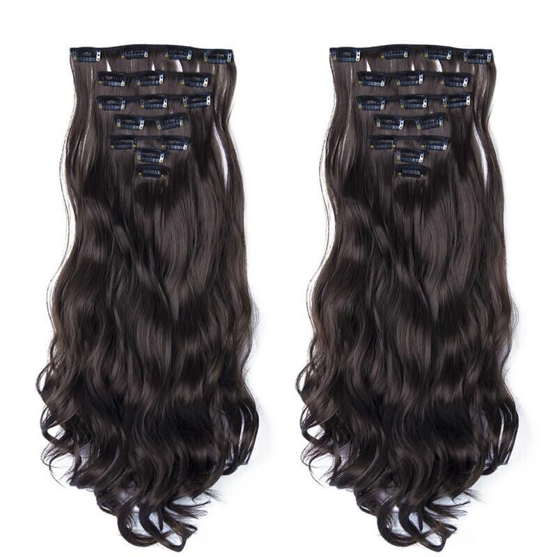 Clip In Hair Extensions, 7 pcs Natural & Soft Hair & Blends Well, Long Wavy Hairpieces (Black, One Size)
