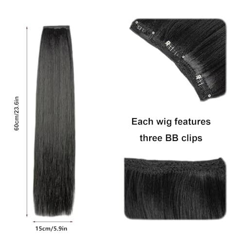• Clip In Hair Extensions & Seamless Invisible Hair Pieces 60cm 4 Pieces Black