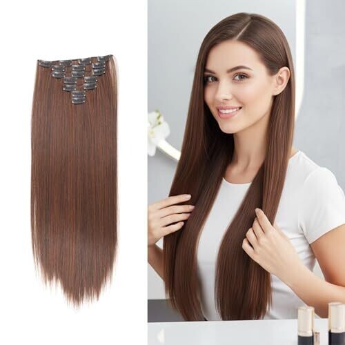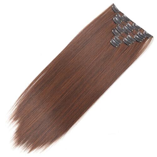 Crfy Clip-In Hair Extension Set, BROWN Full Head, 7pcs, 60cm, Natural-Looking Volume (BROWN)