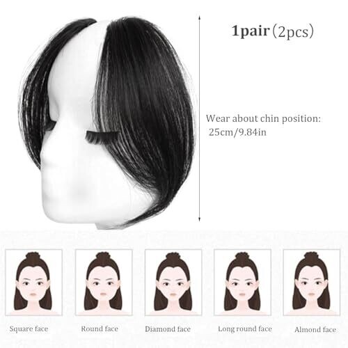 FRAKMU 2pcs Wavy Side Bangs Clip-In Human Hair Extensions, 9.8 Inch, Natural Black