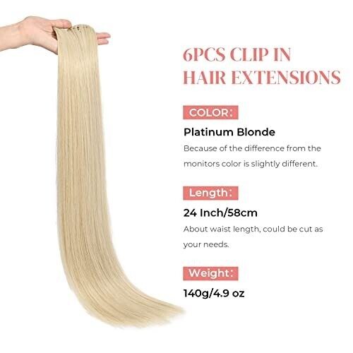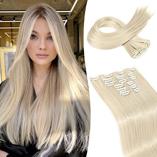 • Lonai Clip In Hair Extensions 6pcs Straight 24" Blonde Hair Extensions for Women Heat Resistant Synthetic Hairpiece Platinum Blonde