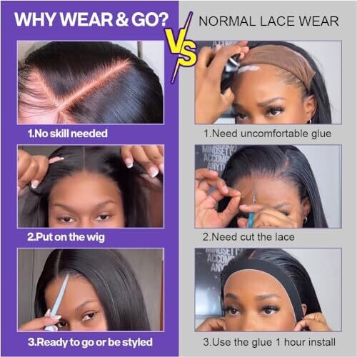 • Glueless design means quick, tool-free installation—perfect for effortless styling in minutes.