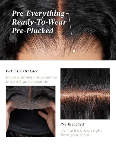 • Natural black 5x6 lace front with pre-cut fashion-ready styling for a seamless, realistic hairline.