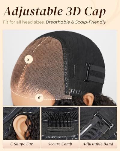 • Glueless construction with adjustable straps ensures a secure, comfortable fit on most head sizes.