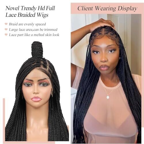 • Lexqui 36-Inch 360° HD Full Lace Knotless Braided Wigs for Women Box Braid Wig with Baby Hair