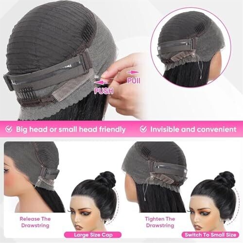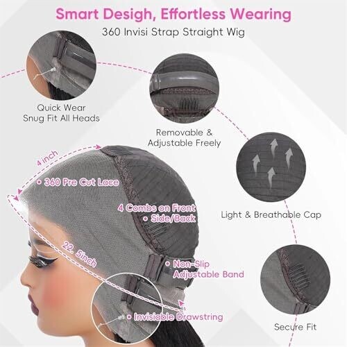 Experience a natural-looking, full silhouette with a seamless hairline. Premium human hair provides smooth texture and natural luster. 360 lace enables updos and ponies. Secure fit with hidden straps and elastic bands, pre-plucked hairline for ready styling.