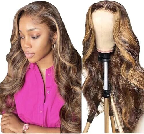 360#Color Synthetic Lace Front Wigs for Women Copper Body Wave Glueless 24 Inch