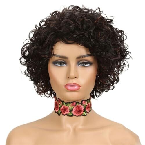 • Women's Ombre Short Curly Human Hair Wig Remy Short Bob Full Wig In Black