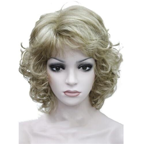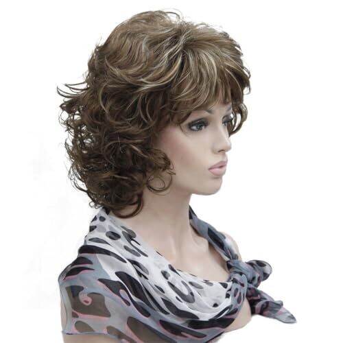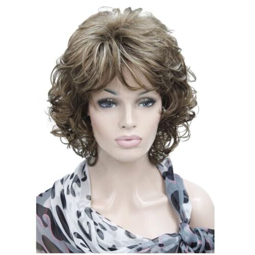 • Women's Wig Short Curly Dark Brown/blonde Natural Synthetic Full Wig