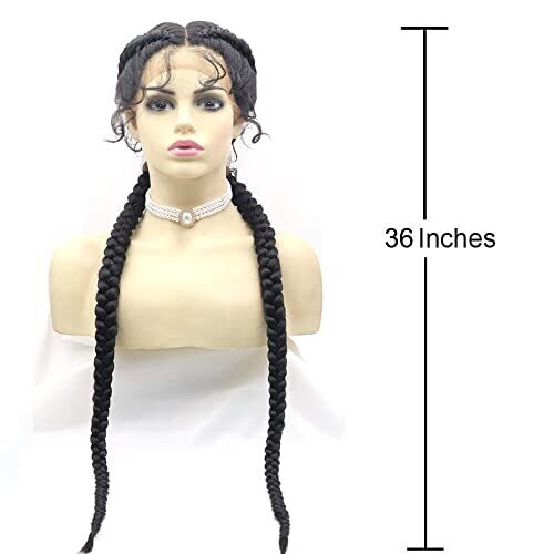 • Xiweiya 36" Black Braided Wig 2 Twist 360 Full Lace Wig for Women Drag Queen Halloween Cosplay
