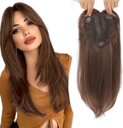 Human Hair Toppers for Thinning Hair - 1pcs Real Hair Pieces with Bangs - Wigs (Light Brown)