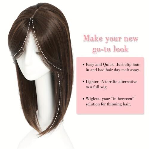• Versatile dark brown tone with fringe adds dimension for casual or elegant styles.