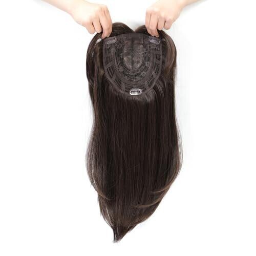 • 16Inch Short Straight Hair Topper Realisitc Silk Base Topper (6X6cm) for Women (Dark Brown)