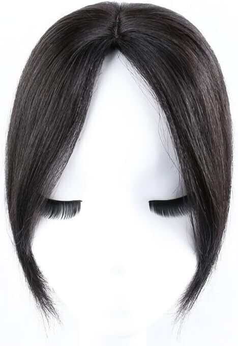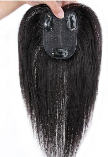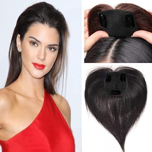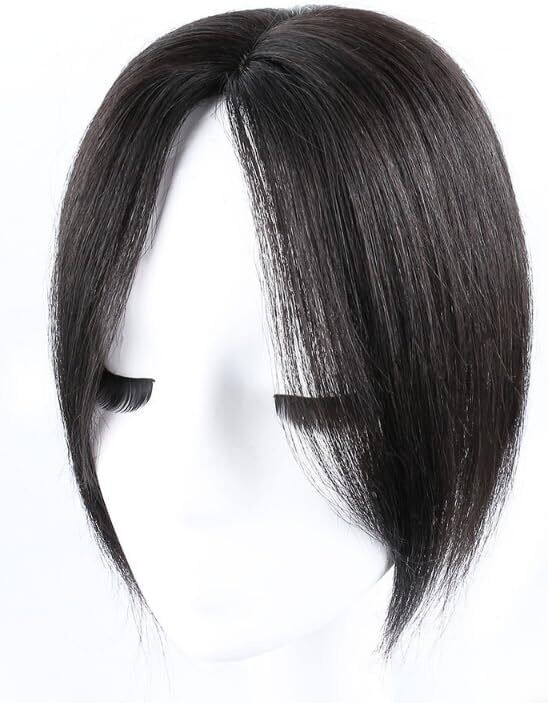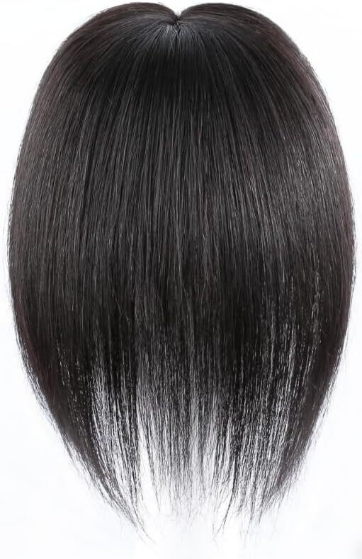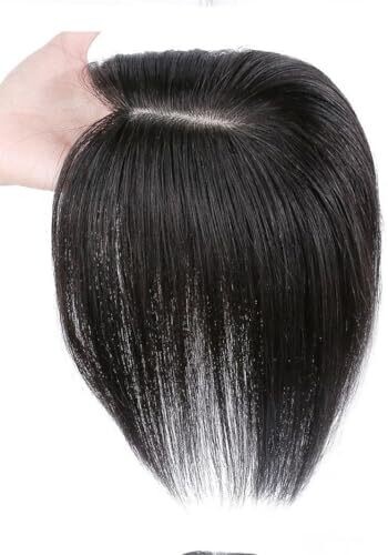 Hair Toppers for Thinning Hair Women Real Hair 9.8 Inch Silk Base Clip-In Extensions Natural Black