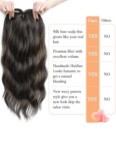 Wavy Hair Topper for Women, 20" Hair Toppers for Thinning Hair, Toppers (Brown with Highlights)