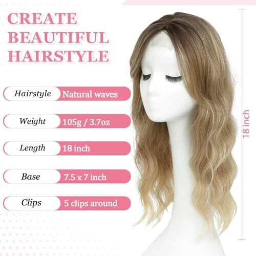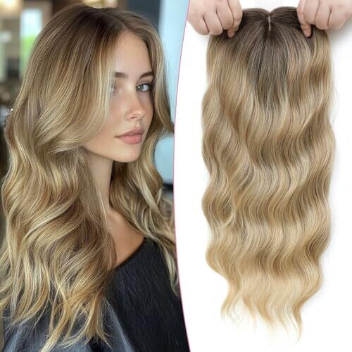 • Lasunork Hair Toppers for Women Wavy Curly Fringe Hand-Tied Lace Clip (Brown Blonde with Dark Root)