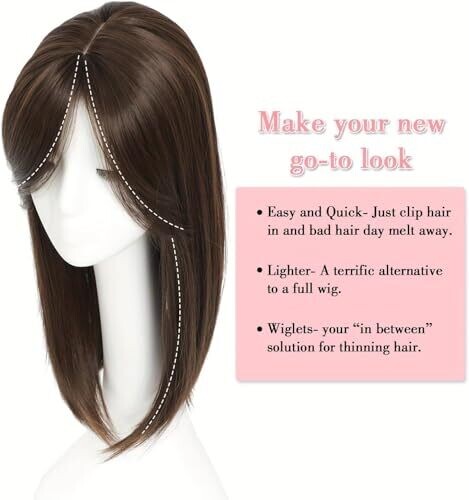 Experience a fuller, natural silhouette with 18-inch wavy texture that blends with your hair. This lightweight clip-in topper provides confident coverage, fringe styling, and easy, removable wear for a refreshed look.