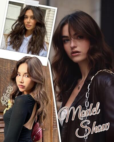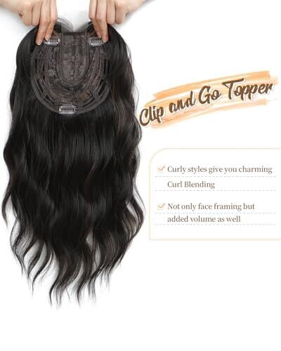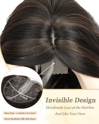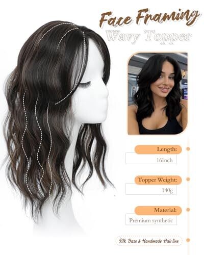 Morichy 16Inch Wavy Curly Hair Topper Dark Brown with Highlights, Synthetic
