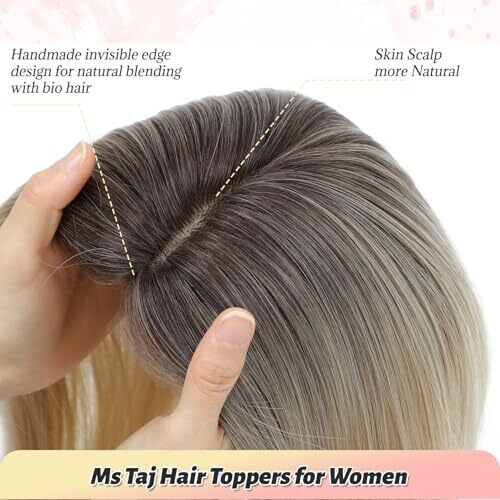 • Ms Taj 12 Inch Hair Topper for Women with Thinning Hair 6.5 X 6.5 Large Base with Bangs Ombre Blonde