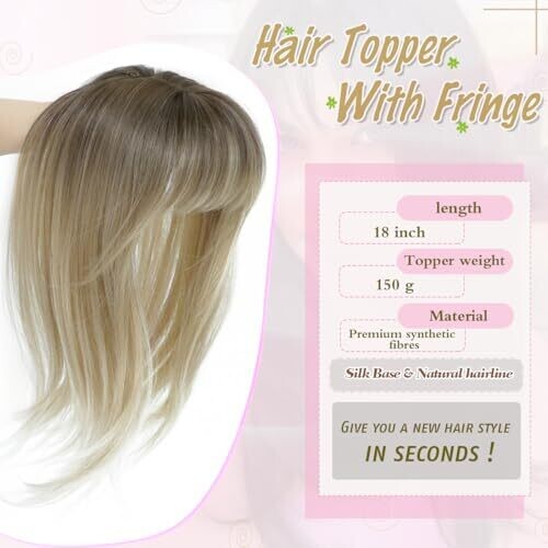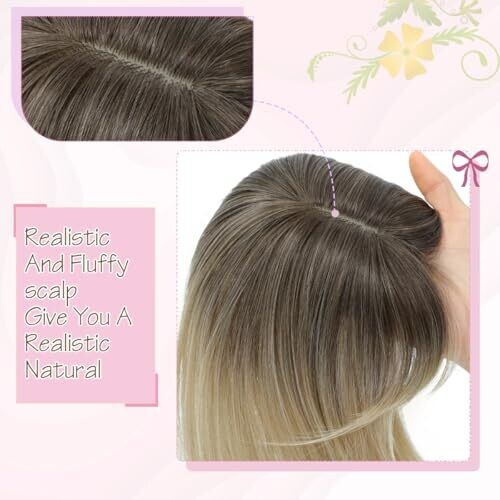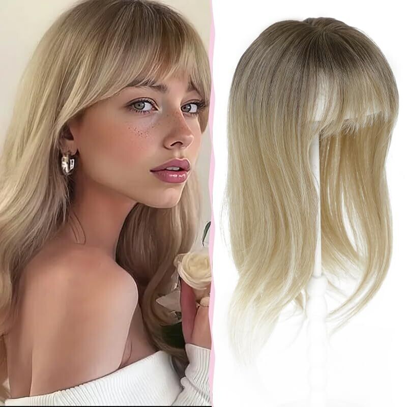 Flyroseing Hair Topper 6.5X6.5 Inch Base with Fringe 14 Inch Ombre Dark Blonde Wavy Synthetic Wiglets