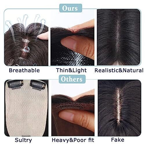 Remy Hair Toppers for Women deliver a natural, seamless look with 100% real human hair you can wash, style, or color. Lightweight lace base with 3 anti-slip clips provides comfortable, secure crown coverage for everyday wear.
