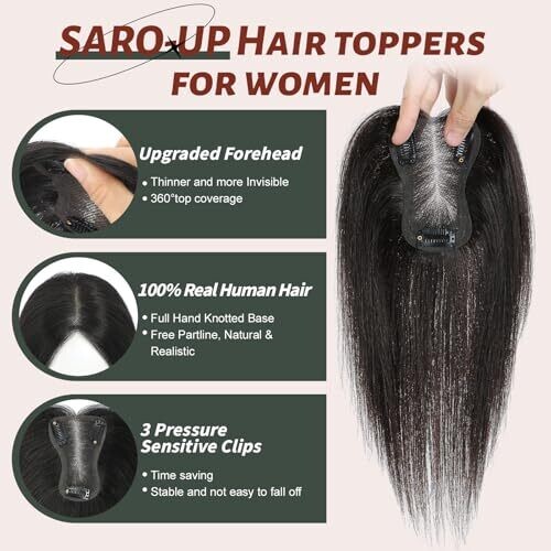 • Saro-Up Hair Toppers Real Human Hair for Women 3 * 4.5 Inch Swiss Lace Topper (Natural Black)