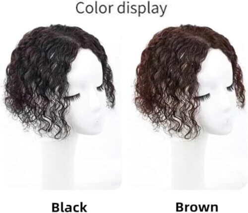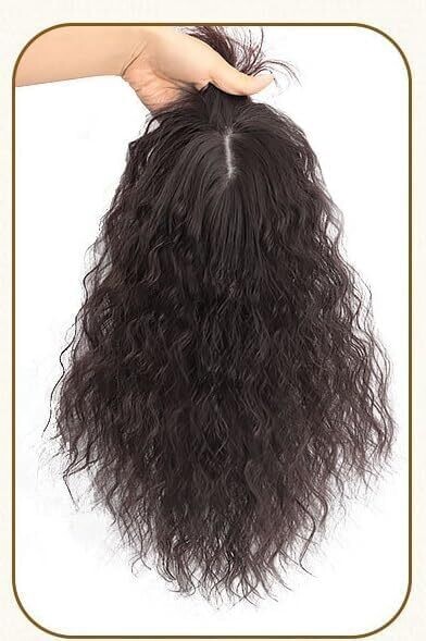 U-Shaped Silk Base Toppers for Women Real Hair with Thinning Hair, Long Curly Clip-In Hairpieces (Natural Black, 10 Inch)