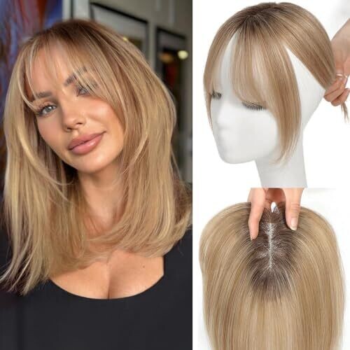 • Udu Real Human Hair Toppers with Thinning Hair & Ombre Blonde Bangs for Hair Loss