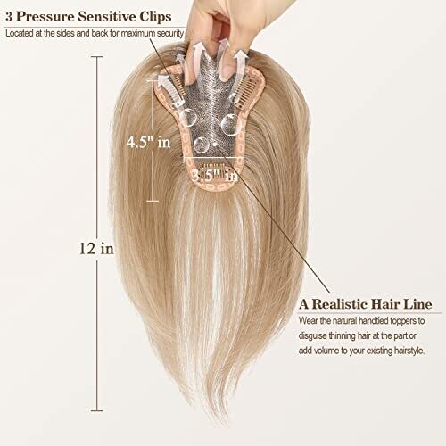 Starluck Hair Toppers for Women 100% Real Human Hair, 12 Inch Ombre Light Blonde with Dark Root