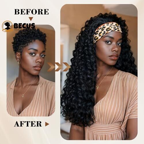 • Becus Curly Deep Wavy Headband Wig Half Wig for Women Long Black Wigs (18''-Black)
