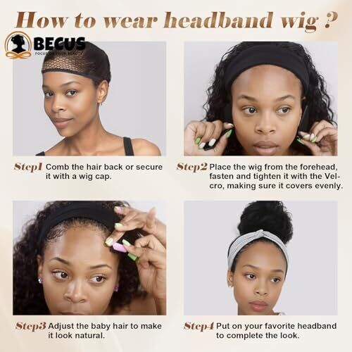 BECUS Curly Wigs Headband Wig Half Wig Wigs for Black Women Headband Hair Wear Glueless Daily Wear