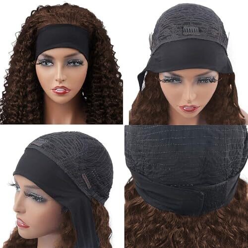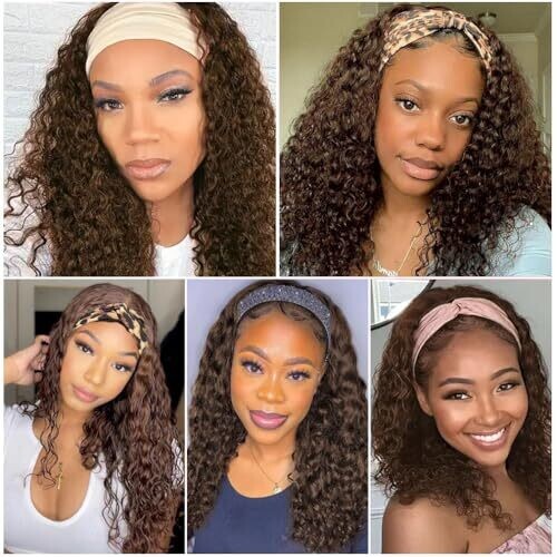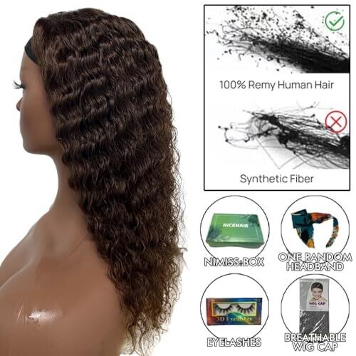 Discover the Nicmiss Chocolate brown headband wig for effortless style in minutes. This 14-inch deep wave Brazilian human hair can be straightened or curled. Built-in headband provides a secure, glue-free, lace-free fit with added comfort.