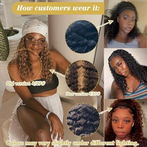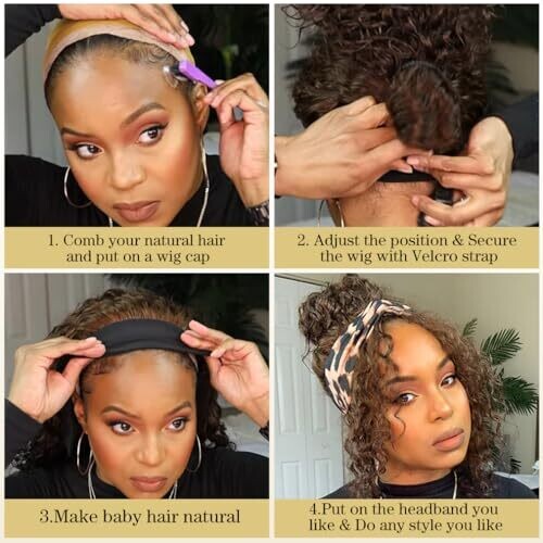 headband wig with 14-inch deep wave Brazilian human hair. Hair origin