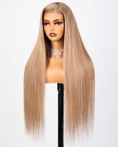 This 20-inch blonde glueless wig offers 220% density and a 6x5 light brown lace closure for a natural scalp look. Pre-cut with baby hairs and bleached knots, it provides easy, secure wear with no glue required.
