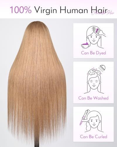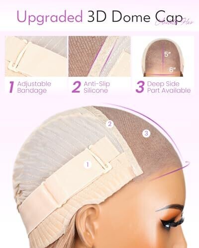 Glueless design; can be dyed, bleached, straightened and styled as desired