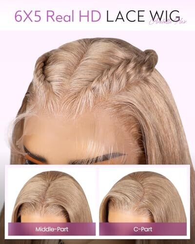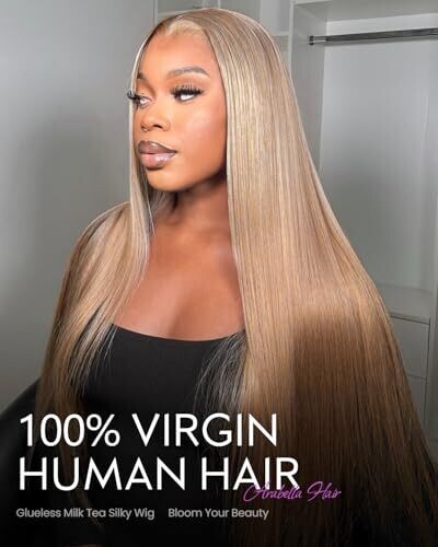 Arabella 20 Inch Blonde Glueless Human Hair Wig Pre Cut 220% Density 6x5 Light Brown Lace Closure Straight No Glue Color Milk Brown