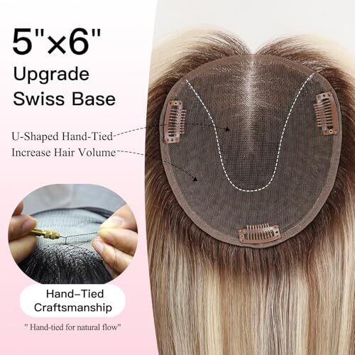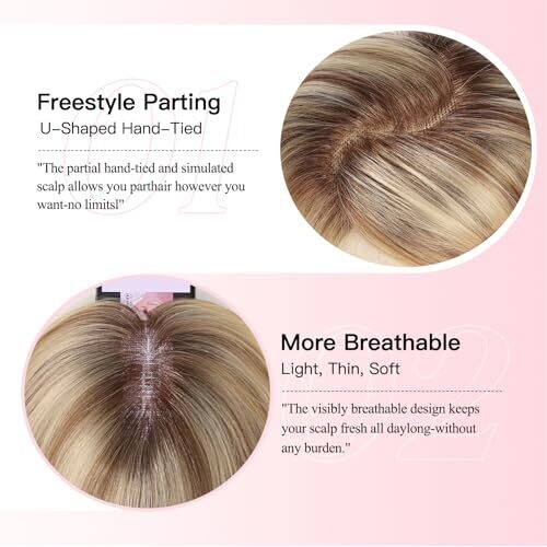 Udu Real Human Hair Toppers with Thinning Hair & Ombre Blonde Bangs for Hair Loss