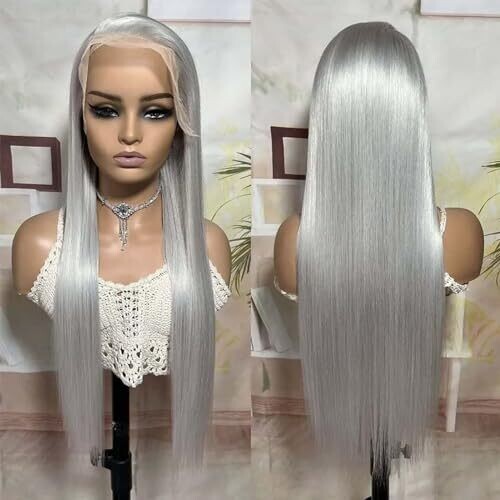 • Licoville 13X4 Hd Lace Front Wig Human Hair Straight Silky Grey Wig 30 Inch