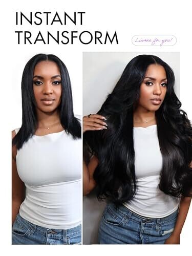 - Long black human hair that styles like your own and lasts with proper care.