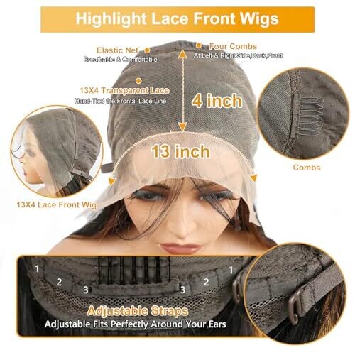 • 13x4 lace front design for a natural hairline and flexible styling options, including side or middle parts and updos.