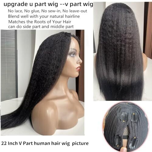 Human hair wig with V Part design; density 180%.