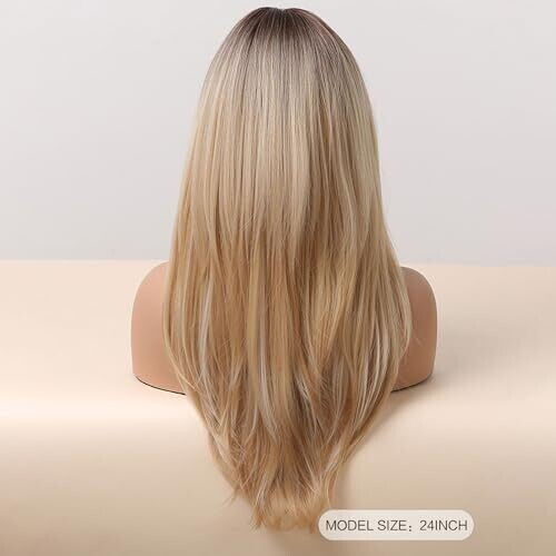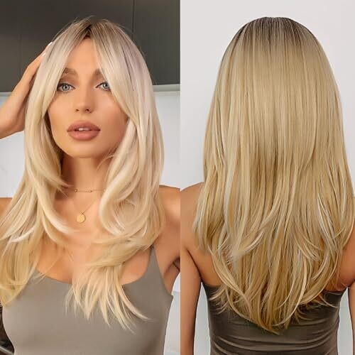 Women's Dark Roots Long Straight Blonde Wig, Natural Wig for Everyday Life