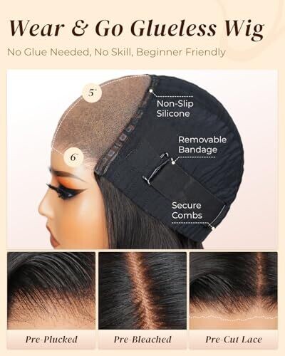 glue-free wig with a pre-cut structure for easy wear and maintenance.