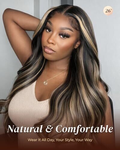 Experience a natural, undetectable look with balayage color and a pre-plucked hairline. The 13x4 lace front provides versatile styling from loose waves to updos. Glueless construction for comfortable wear, 210% density for full, silky Brazilian hair.