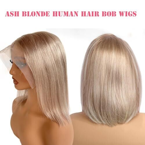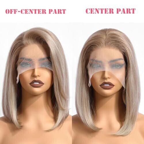 • Ash Blonde Bob Wig 180% Density 13X6 Lace Front Wig Glueless Silver Hair 14 Inch