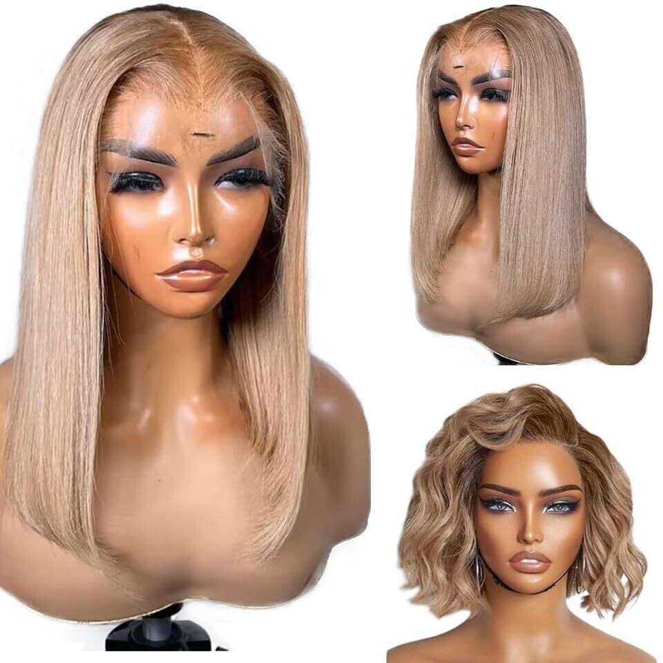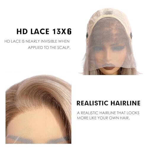 Ash blonde bob wig with 180% density delivers a luxe, full look. 13x6 HD lace front provides an invisible hairline and versatile parting. Brazilian virgin human hair can be dyed, bleached, curled, and restyled. Glueless, pre-plucked hairline for natural edges and easy wear.