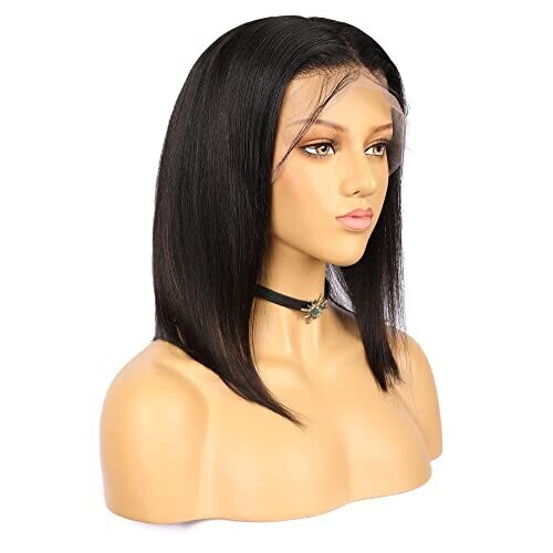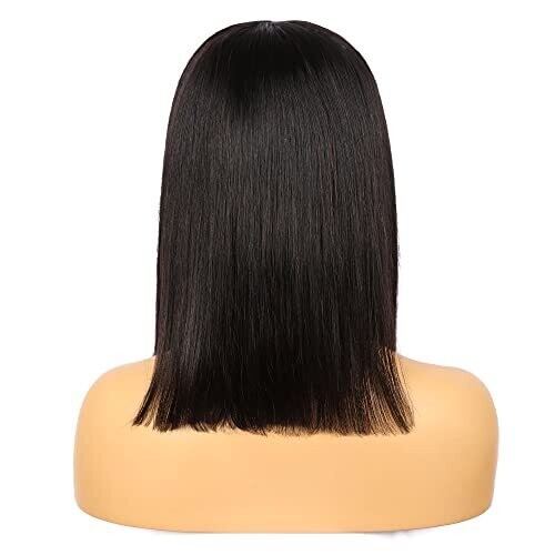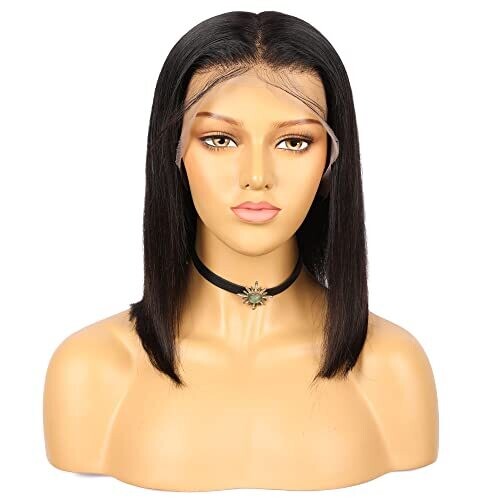 Black Human Hair Lace Front 13-4 Gule-Less Wig, 12 Inch Bob Straight Hair Style 150% Density Wig