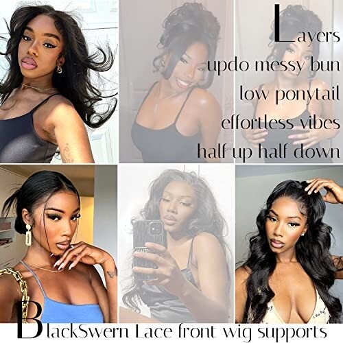 • Blackswern Body Wave Lace Front Wig, Glueless Pre-Plucked Pre-Layered